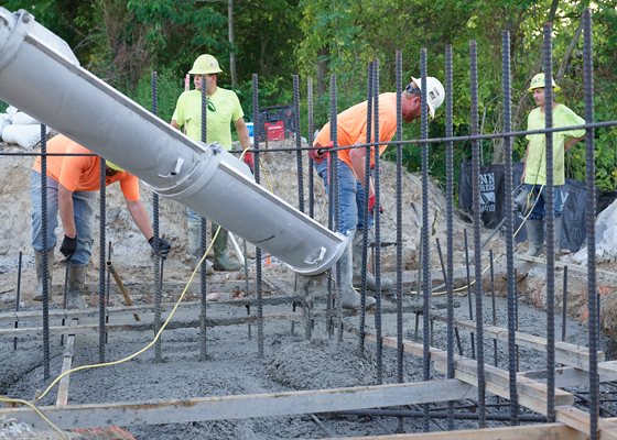 Our concrete construction team offers high-quality concrete construction work, delivering sidewalks, walls, concrete drainage structures, concrete loading docks and dolly pads.
